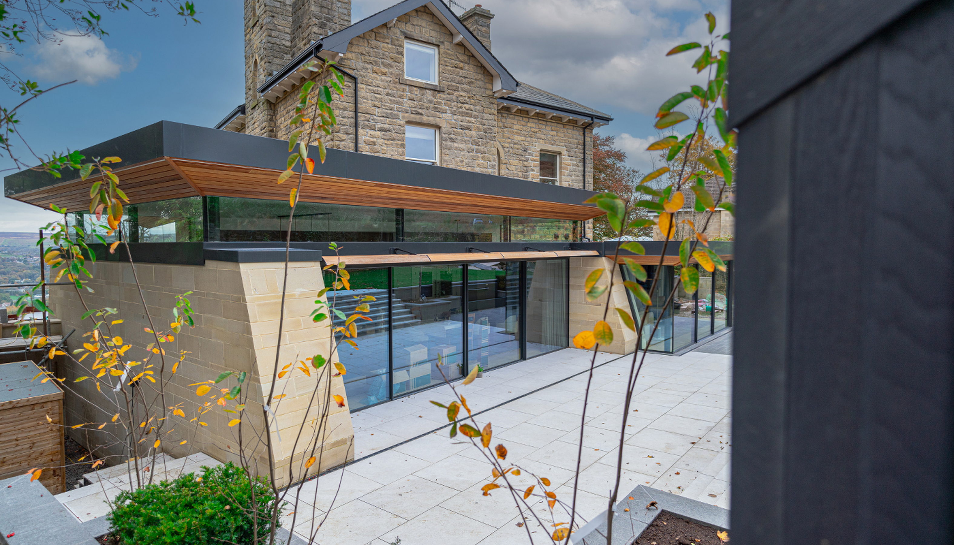 The two key glass elevations were created using our large sliding doors to create the glass extensions in Ilkley. These main glass elevations were U shaped configurations with fixed glass returns and a bi-parting slider at the centre of each read face. Other installations include another two track bi-parting sliding door and a corner configuration with a fixed glass to glass corner.